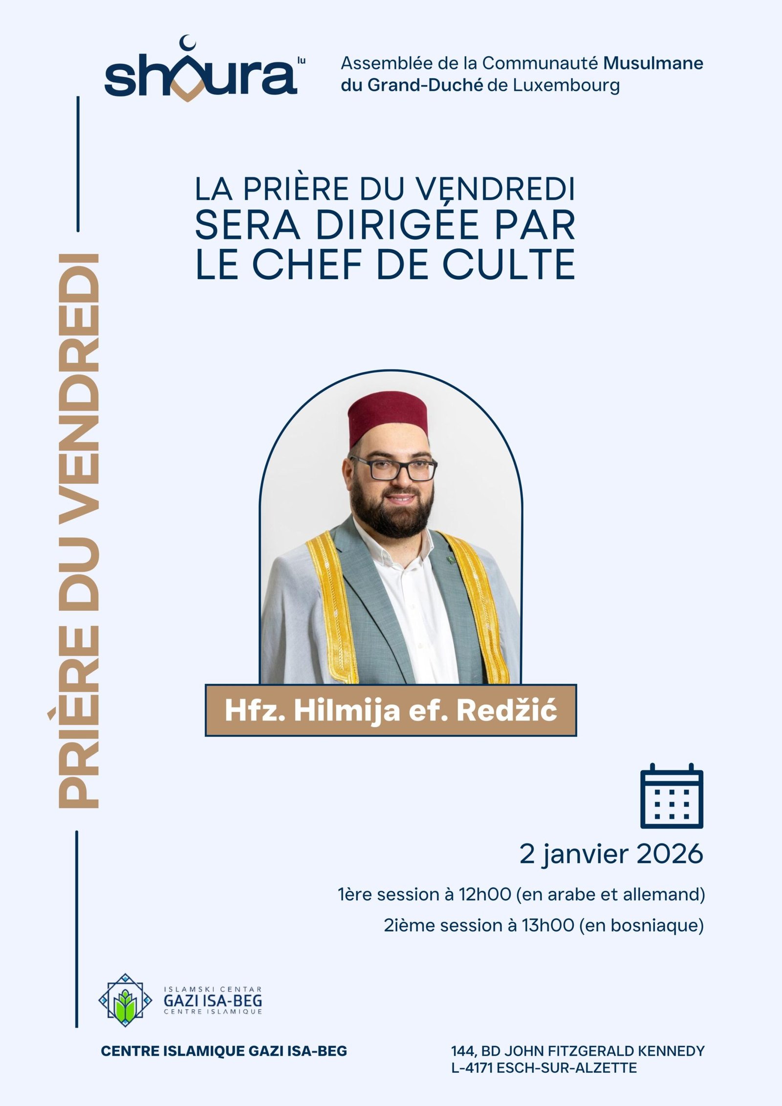 Central Sermon (Khutbah) 8 8 people viewed this event. Register for event To register for this event please visit the following URL: → Date And Time 2 January 2026 @ 12:00 Location 144, Bd John Fitzgerald KennedyShare With Friends Facebook Twitter Linkedin Xing Pinterest