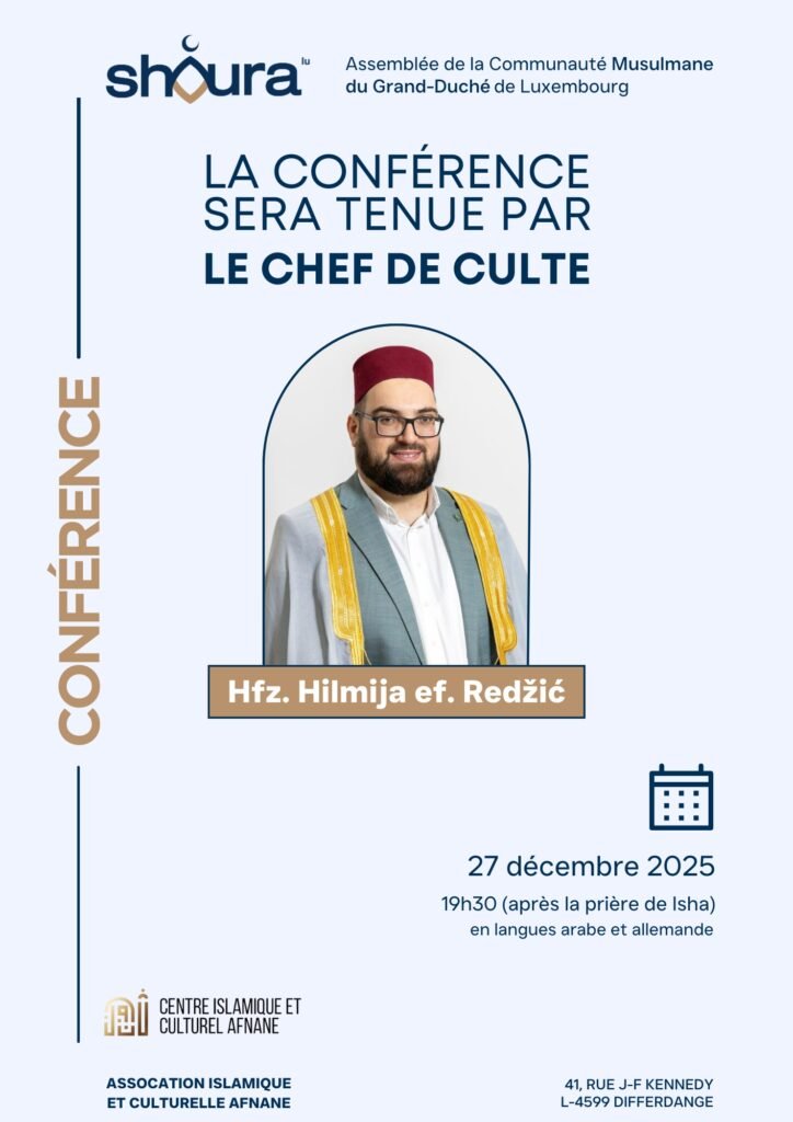 Conférence centrale (dars) tenue par le chef de culte 14 14 people viewed this event. S’inscrire à l’évènement Pour s’inscrire à cet évènement, Veuillez vous rendre à l’URL suivante : → Date et heure 27 décembre 2025 @ 19:30 Lieu 41, rue J-F Kennedy Catégorie de l’évènementDarsPartager avec des amis Facebook Twitter Linkedin Xing Pinterest