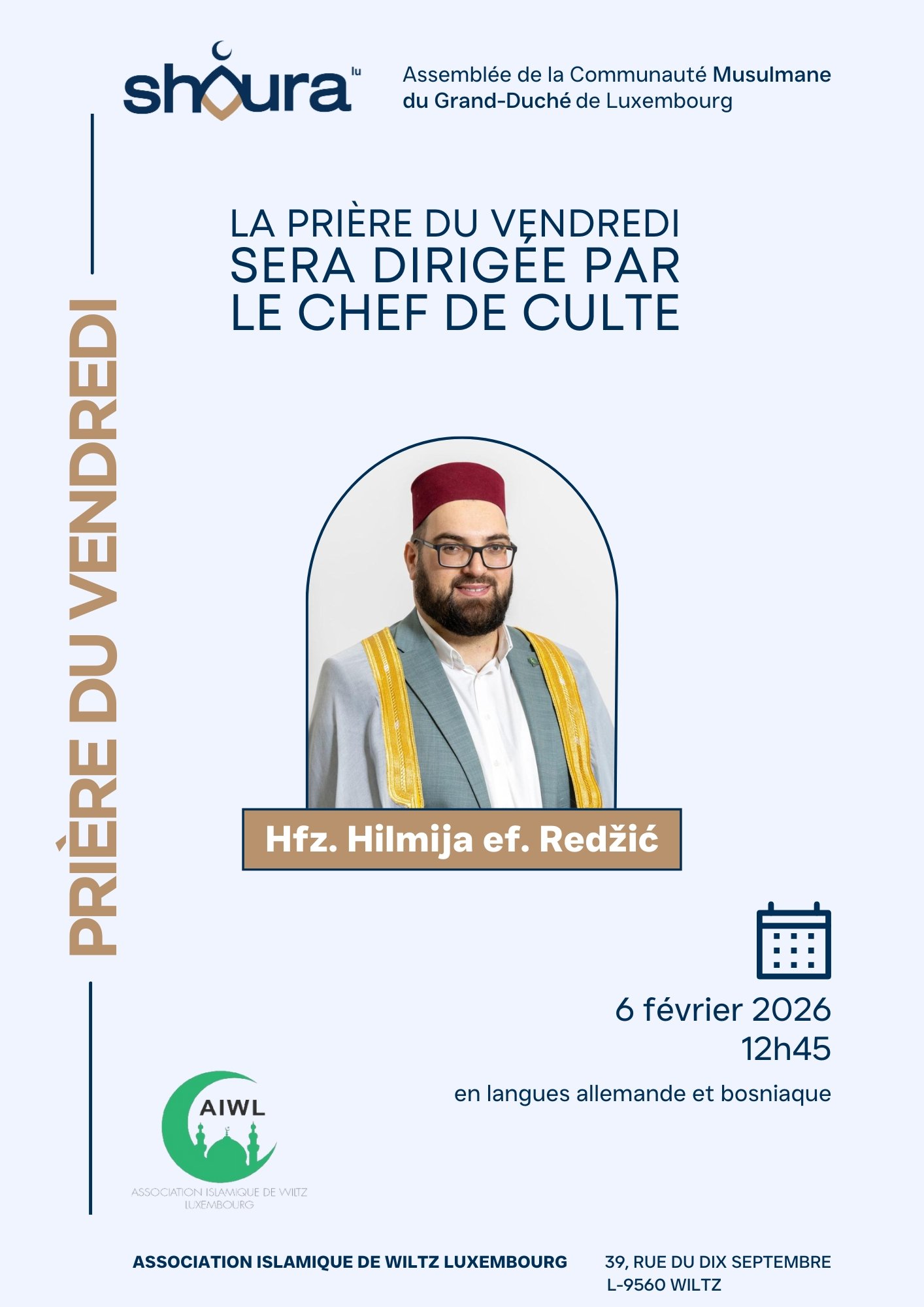 Prêche (khoutba) central 15 15 people viewed this event. S’inscrire à l’évènement Pour s’inscrire à cet évènement, Veuillez vous rendre à l’URL suivante : → Date et heure 6 février 2026 @ 12:45 Lieu L-9560 WiltzPartager avec des amis Facebook Twitter Linkedin Xing Pinterest