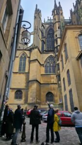 L’après-midi a été consacré à la ville de Metz et à sa célèbre cathédrale Saint-Étienne. Cette cathédrale monumentale, l’une des plus hautes cathédrales gothiques de France, est célèbre pour ses immenses vitraux. La lumière pénétrant à travers ces vitraux, du Moyen Âge à nos jours, crée une expérience intense où s’unissent architecture, couleur et spiritualité. Grâce aux explications des guides, les participants ont pu comprendre comment la cathédrale a été pendant des siècles un centre religieux, culturel et social de Metz.