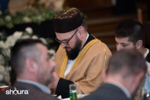Le chef de culte des musulmans du Luxembourg, hafiz Hilmija ef. Redžić, s’est ensuite adressé aux présents, soulignant que cet événement réunissait les principaux acteurs responsables de la communauté musulmane du pays. Il a rappelé que cette communauté s’est construite grâce aux efforts de personnes honnêtes et dévouées et que son avenir dépend de la poursuite du travail dans les domaines du savoir, de l’engagement créatif et du développement des individus et du waqf. Il a averti que les individus et les communautés qui ne portent pas de projets risquent inévitablement de régresser. Il a ainsi insisté sur la nécessité d’initier et de poursuivre des projets existants, condition essentielle au progrès de la communauté. Il a conclu en affirmant que la plus grande valeur de la communauté musulmane reste la piété.